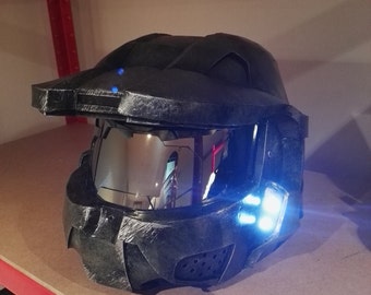 A detailed replica of a Spartan helmet from the Halo video game series is displayed on a shelf. The helmet is made of a textured material that mimics the look of the game's armor, with a reflective visor and glowing blue lights on the sides. The helmet is positioned upright, showcasing its intricate design and the iconic visor. | LED lights for halo helmet | be0f2365a17b207e1003c282743ec2a8fa25347ed7fb9a671ffc5fee7bec70f5 | 001229735196 | 0 | 0 | 58 | 5 | 0 | 0 | |