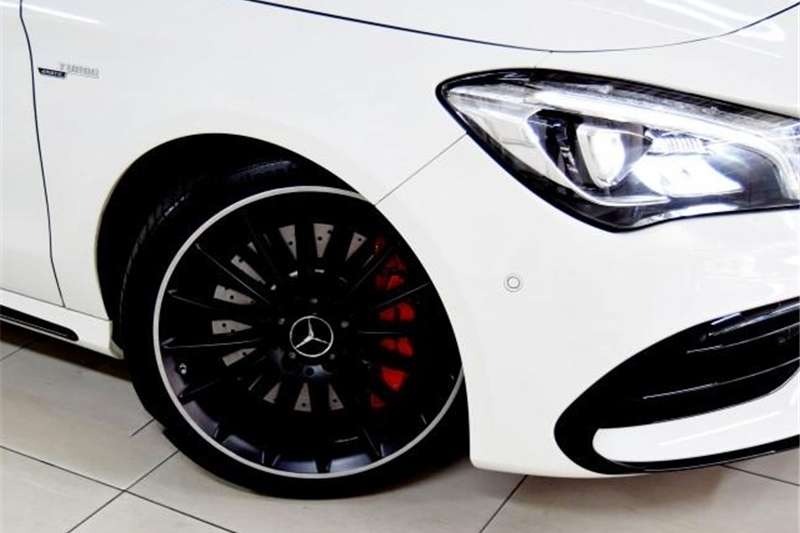 A close-up of a white car's front wheel with a black rim and red brake caliper. The car is parked on a tiled floor, and the wheel is positioned towards the left side of the frame. The car's bodywork is visible, and the headlights are on, casting a reflection on the tiles. | Mercedes Benz CLA 45 4Matic 2016 | 8b84ecb9e56671971b6abf1bf8e4bb062051bd306811a5df8ed79ba6cb8bc1a1 | 001229735808 | 0 | 0 | 52 | 6 | 0 | 0 | |