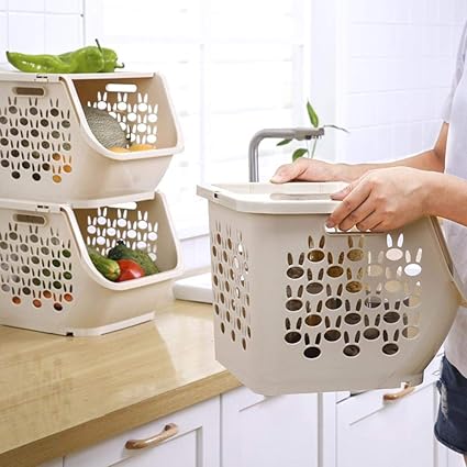 A person is holding a white mesh basket filled with various fruits and vegetables. The basket is placed on a kitchen counter next to a white sink and a window. There are two other white mesh baskets on the counter, one filled with green vegetables and the other with a variety of fruits. | Miss-an Storage Basket Kitchen Storage Basket Rack Multifunctional Stacking Baskets Toys Storage Box Multi Layer Stackable Rack Fruit Vegetable ... | d27a7cbc938902ac0013c16257251c0a926c57ef40f0be2d478c374e5aa5bf47 | 001229735959 | 0 | 0 | 53 | 20 | 0 | 0 | |