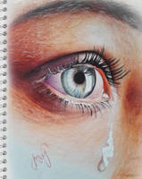 A detailed sketch of a human eye with a tear running down the cheek, set against a background that resembles a spiral notebook. The eye is rendered with a high level of realism, featuring individual eyelashes, the iris with a detailed pattern, and the reflection of light on the cornea. The tear is depicted with a smooth, flowing line, and the cheek has a soft, textured appearance. The spiral notebook background has a grid pattern, and there is a signature in the bottom left corner. | Crying eye by igshqipeartwork | 90223034b919dfc509b91228911309212364455d439d6b4aacdc961ef218c7d4 | 001229735884 | 0 | 0 | 85 | 4 | 0 | 0 | |