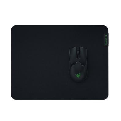 A black computer mouse with a green logo on the side is placed on a black mouse pad. | Mousepad Gamer Razer Gigantus V2, M\xc3\xa9dio (360x275mm), Preto - RZ02-03330200-R3U1 | 01494f4e64e612b8247906724b80fa9833f9e606ce5a674b3749eae10d738525 | 001229735920 | 0 | 0 | 18 | 10 | 0 | 0 | |