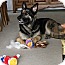A German Shepherd dog is lying on the floor with a chew toy in its mouth. The dog is surrounded by various other chew toys scattered around it. The room has a carpeted floor, and there is a chair visible in the background. | Photo 4 - German Shepherd Dog Mix Dog for adoption in Alameda, California - Dino | 32cf61155028967c43ab1d73393ddcc462bbd679e41656528e9a48e752afa026 | 001229736250 | 0 | 0 | 43 | 15 | 0 | 0 | |