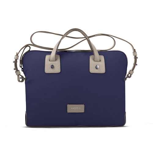 A navy blue leather satchel with a gold buckle and a small silver logo on the front. | Canvas Satchel Briefcase (13 inches) - Navy Blue-Light Taupe - Canvas | 33f9b4e6a7b2fca7978069ac3d856bd43255025994476ead9c1a132cfcc87139 | 001229736868 | 0 | 0 | 17 | 11 | 0 | 0 | |