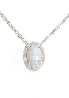 A close-up image of a silver necklace with a round pendant featuring a large, iridescent pearl surrounded by a halo of smaller diamonds. The pearl has a subtle pinkish hue with a white center, and the diamonds are set in a circular pattern around the pearl. The necklace is displayed against a white background, and the focus is on the pendant. | Lafonn Simulated Opal Halo Pendant Necklace | cc2ad229ddb13ec37a85a9bc90c335675e66086f21300cd869195bccc50bf9e8 | 001229736750 | 0 | 0 | 61 | 6 | 0 | 0 | |