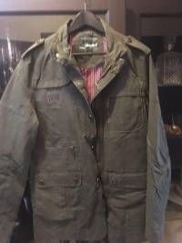 A green military-style jacket with multiple pockets and a hanger is displayed on a mannequin. The jacket has a collar, buttons, and a zipper. There is a tag on the jacket with the word 'MILITARY' written on it. The mannequin is positioned in front of a backdrop with a glass cabinet containing various items, including a vase and a glass. | Jeep Rich Mens Cotton Washed Leisure Business Stand Collar Jacket Coat | 3dad32f55672a051889825100e1cc165039d842984ec188b9f5ed2a3d1e0f2e5 | 001229737470 | 0 | 0 | 60 | 11 | 0 | 0 | |