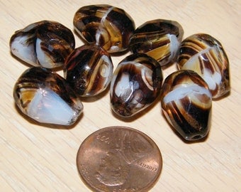 A collection of colorful, striped seashells is arranged on a wooden surface. The shells are of various sizes and colors, including shades of brown, white, and black. In the foreground, there is a single United States penny with a profile of Abraham Lincoln on it. | Czech Glass Milky Brown Crystal Stripe Teardrop Faceted Beads 16mm (8 beads) | eaba8fe8d7034edcb4ce7a79869d2e310ebb9dee776322ac254697d1a41c0ae6 | 001229737459 | 0 | 0 | 45 | 12 | 0 | 0 | |