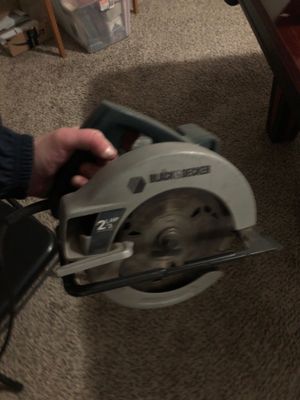 A person is holding a circular saw with a black and gray color scheme, featuring a Bosch logo on the side. The saw has a metal blade and a black handle with a trigger. The person is standing in a room with a carpeted floor, and there is a wooden table in the background. | Black and decker circular saw 7 1/4 inch diameter for Sale in Fresno, CA | b9000a79b1b6fd3e180ff5f04b413bb1f0d71b7b0f5cd7c53717d6e4ec81b484 | 001229738360 | 0 | 0 | 54 | 14 | 0 | 0 | |