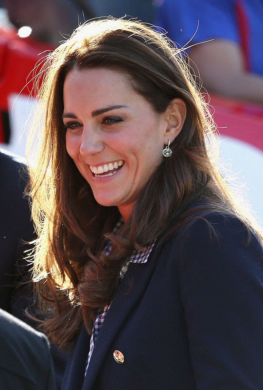 A woman with long, wavy hair is wearing a blue blazer over a white shirt with a checkered pattern. She has a necklace and earrings on, and is smiling broadly. The background is out of focus, with a hint of a red surface and a blurred figure in the upper right corner. | William and Kate Down Under - Day 6 & 7 | cb7cca2345237f01b40d9aea205a59c9aa3b31378e13d662c956b79b3f6b5497 | 001229738300 | 0 | 0 | 52 | 10 | 0 | 0 | |