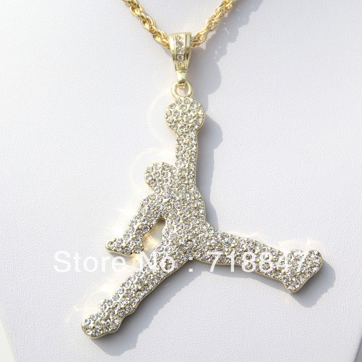A close-up view of a gold necklace with a detailed, sparkling basketball pendant. The pendant features a basketball player in a dynamic pose, surrounded by a halo of smaller, faceted stones. The necklace is displayed against a white background, and the image is well-lit, highlighting the intricate details of the pendant. | Big gold basketball pendant chain necklacehip hop bling bling big gold basketball pendant chain necklacehip hop bling bling jewelryn0175 chain necklaces cheap chain necklaces big gold basketball penda online with mozeypictures Images | 89e85fcd9f1118c8b742b733e2af8944bd0281931882b7f53218f47129d389ab | 001229738345 | 0 | 0 | 51 | 32 | 0 | 0 | |