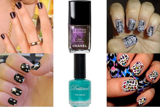 A collage of various nail polish bottles and manicures. The top left corner shows a hand with a gold ring and a gold necklace. The top middle shows a bottle of 'Levins Nudelair' nail polish. The top right corner displays a hand with a black and white geometric nail design. The bottom left corner features a hand with black and white nail art. The bottom middle shows a bottle of 'Destinail' nail polish with the words 'WAL COLOR' on it. The bottom right corner displays a hand with a colorful leopard print nail design. | 2010's Hottest Nail Trends | cfe6ffc69c63b53559ceb0fde35516ca83b507a74807c28517d723e66b86b07d | 001229739021 | 0 | 0 | 94 | 4 | 0 | 0 | |