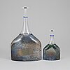 A tall, slender glass vase with a blue tint and a small, round base stands next to a smaller, round glass vase with a green tint and a blue rim. Both vases are placed on a white surface against a white background. | Bertil vallien, two glass vases from kosta boda artist collection. | 50f025189a6bc67c95e3c2b642510685321e69e0cdea790215372cad895b13bb | 001229739295 | 0 | 0 | 42 | 10 | 0 | 0 | |