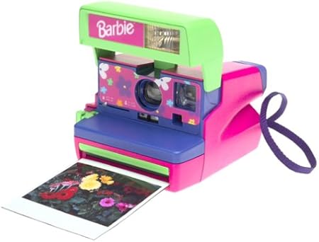 A pink and green toy camera with a 'Barbie' logo on the top, a flower design on the front, and a purple strap. The camera has a viewfinder and a flash on top, and it is placed on a white surface with a picture of a flower and butterfly on it. | Barbie PW-30063F-1 product image 4 | b4ae3d60d4f84291ef6511a7cf75b857459424965fd6d6855fab581d1e7b1ee0 | 001229739365 | 0 | 0 | 51 | 5 | 0 | 0 | |
