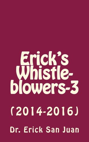 A book cover with a red background featuring white text that reads 'ERICK'S WHISTLE-BLOWERS-3' and the subtitle '(2014-2016)'. The author's name, 'Dr. Erick San Juan', is displayed at the bottom of the cover. | Erick's Whistleblowers-3: (2014-2016) pdf epub | fbffafbea66988b1d6e920fbd38a20d5e7cc5d20dbbdbc420f3ab7013f01678f | 001229740462 | 0 | 0 | 33 | 5 | 0 | 0 | |