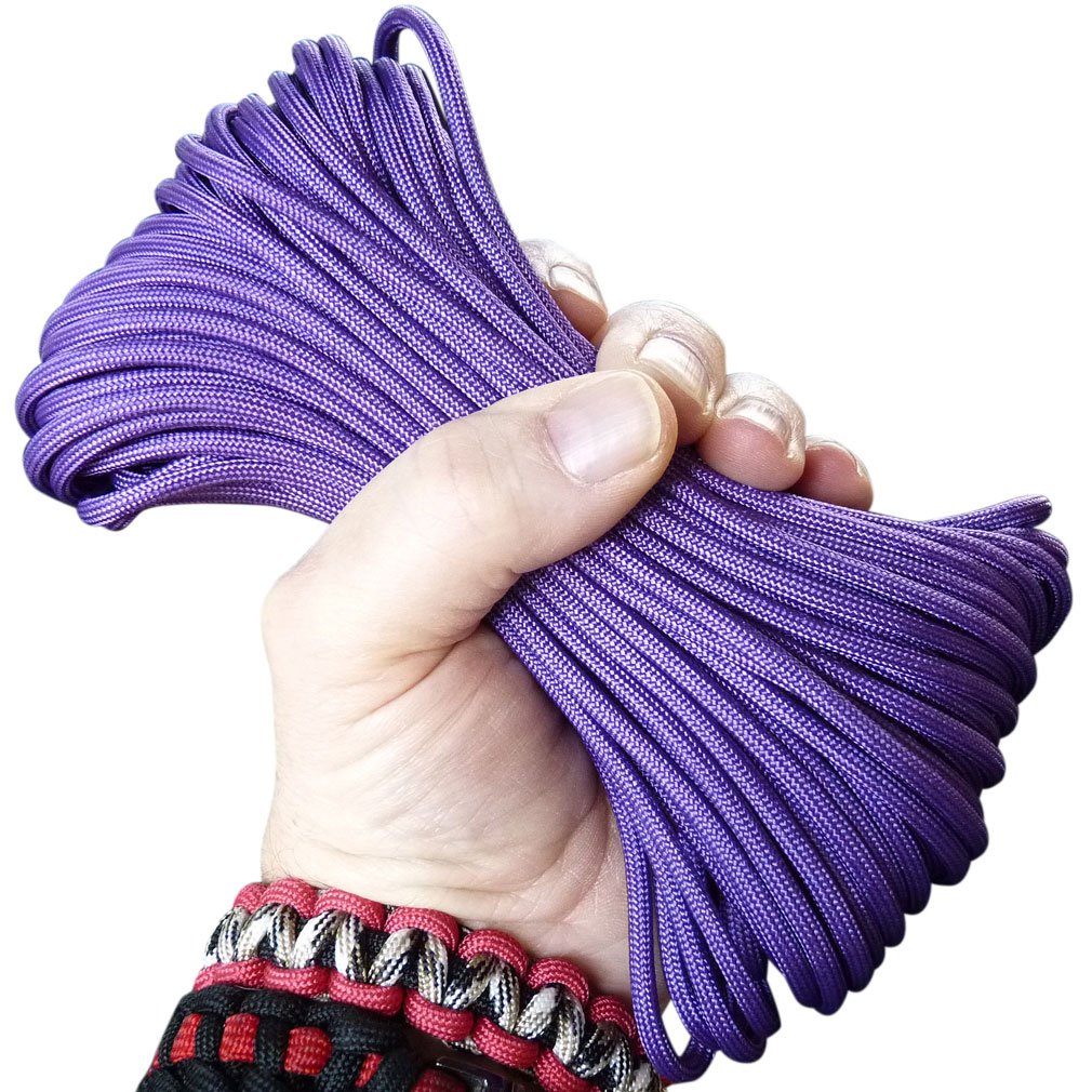 A hand is holding a bunch of purple ropes. | Paracord Jewel of Egypt Purple 50 ft. Hank, 7 Internal Strands, 550 Lb. Break Strength. Military Survival Parachute Cord for Bracelets & Projects. Guaranteed Made In US. Includes 2 eBooks. | 91a504844f22a0c54f899f344ffb8f551b8361ae840525c24280016b9401f7b0 | 001229740360 | 0 | 0 | 9 | 30 | 0 | 0 | |
