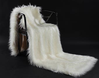 A white fluffy fur coat is draped over a black metal chair. | Lamb Wool Faux Fur Long Weight Blanket - Mongolian, Long Hair, weight Blanket, Throw Blanket, Faux Fur Throw | cae6c46cd60636e8a3ebec3cba6d2bb813a1f554ccb4ceb419066619fca8e575 | 001229740394 | 0 | 0 | 12 | 18 | 0 | 0 | |