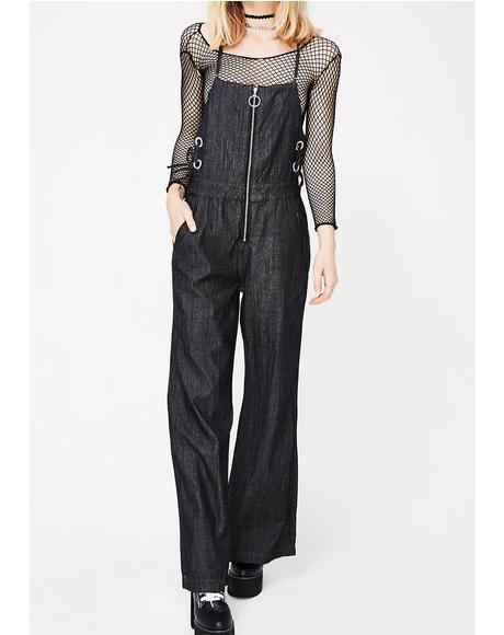 A person is wearing a black denim overall with a mesh top underneath, black boots, and a choker necklace. | Can't Quit Denim Jumpsuit | b8a4325ea18aef2b9a7a87f224c92cbbed159702f59cddc22c71b9b44ef6a55b | 001229740606 | 0 | 0 | 19 | 4 | 0 | 0 | |