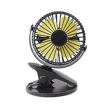 A black handheld electric fan with a yellow and black blade design is displayed on a black stand. | 360\xc2\xb0 Portable Camping Fan Rechargeable USB Clip On Mini Desk Fan Pram Cot Car | cc8ade2878104272c8e244a333f8eef5b26d7bc8f766156b96414590e1b3d20c | 001229741094 | 0 | 0 | 18 | 14 | 0 | 0 | |