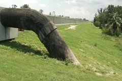 A large, rusted pipe is lying on the grassy ground next to a fence. The pipe is curved and appears to be made of metal. The grass is green and there are some small plants growing around the pipe. The fence is tall and runs parallel to the pipe, and there is a clear blue sky above. | New orleans levee system, five separate external,exterior shots Stock Footage | e7a68d2d83b501a9c883ca499b69e4d8ff7a6d0f5e972d446f35269f9ff9344c | 001229741121 | 0 | 0 | 57 | 10 | 0 | 0 | |