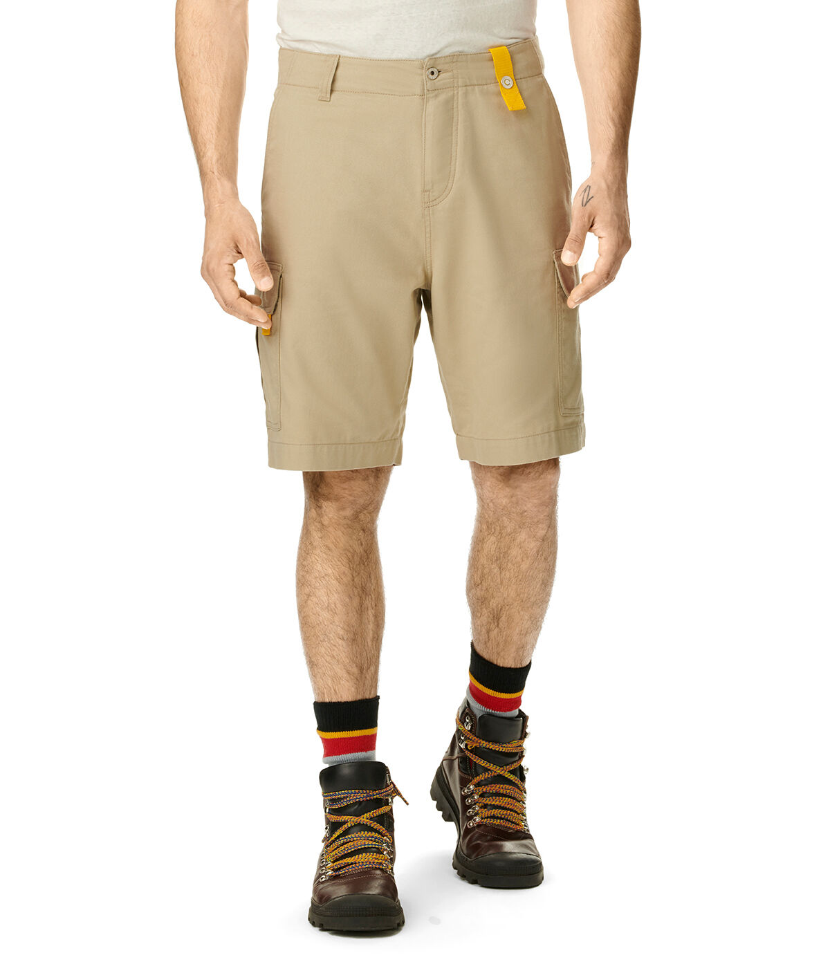 A man is standing with his hands on his hips, wearing a white t-shirt, beige shorts, and brown hiking boots with red and black socks. | LOEWE Eln Cargo Shorts Beige front | aef952e7d2deb43fc37456550907f14483f3a5ed22753b919054714a8a8c1dbb | 001229741011 | 0 | 0 | 25 | 6 | 0 | 0 | |
