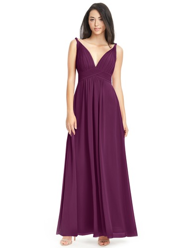 A woman is wearing a purple dress with a V-neckline and short sleeves. The dress has a fitted bodice and a flared skirt that falls just above the ankles. She is standing with her hands on her hips, and her hair is styled in a long, wavy manner. | Azazie Maren Bridesmaid Dress | 000d3a987791bc02208bad14c77c915c6de723f0f05979d2ef83e103c71422d5 | 001229741970 | 0 | 0 | 48 | 4 | 0 | 0 | |