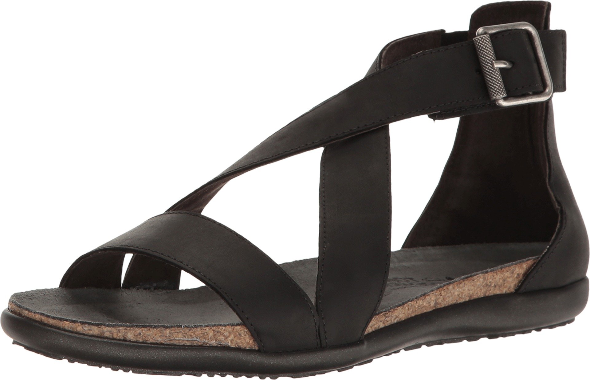 A black sandal with a black leather upper, black straps, and a black buckle. The sandal has a woven toe post and a black sole with a textured pattern. | Naot Footwear Women's Rianna Oily Coal Nubuck Sandal | 935b7449a6af7021ef044c05891314d289464c296621eec060702a25080c5919 | 001229741981 | 0 | 0 | 29 | 8 | 0 | 0 | |