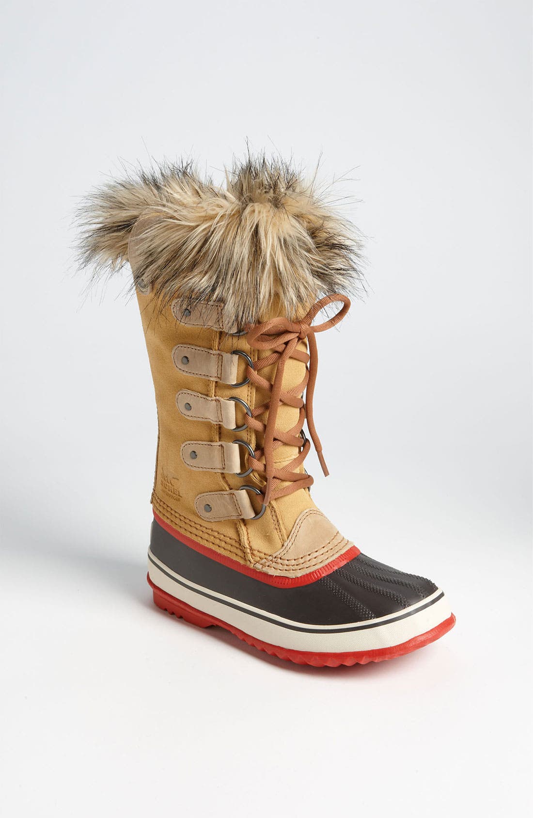 A pair of brown and black high-top boots with a fur trim on the top is displayed against a white background. | SOREL,\n 'Joan of Arctic' Waterproof Snow Boot,\n Main thumbnail 2, color,\n 227 | d2513640752649aefeeff3a7c474dac864e247f1331c7b304aa88471bae560af | 001229741899 | 0 | 0 | 21 | 12 | 0 | 0 | |