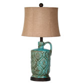 A lamp with a beige lampshade and a green, ornate base. | Privilege Table Lamps | 79964b95df4ce786365c1ffb960668d62355e90472c48ad021d4ca7031518587 | 001229742445 | 0 | 0 | 11 | 3 | 0 | 0 | |