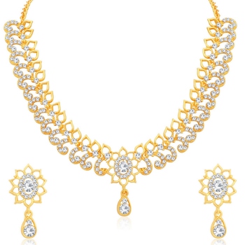 A close-up view of a gold necklace with a large pendant and two smaller earrings, all adorned with diamonds. The necklace features a detailed design with multiple strands and a clasp, while the pendant and earrings have intricate settings that showcase the diamonds. The background is a plain white surface. | White diamond necklace-sets | 7cf0673e964db1376a0ee7d871940fbf2fa9ea21988c8eaaea8a66aebc69493f | 001229742395 | 0 | 0 | 50 | 3 | 0 | 0 | |