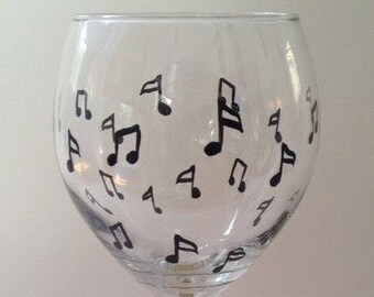A clear glass with a musical note design on it, placed on a white surface. The glass is filled with water, and the musical notes are visible on the glass's surface. The background is a plain white wall. | Musical note hand painted wine glass. Lead free and made in the USA. | 01733390e5dca73f14f80b51abacaab8569990629a366f722ee9fa314f5556b4 | 001229742373 | 0 | 0 | 38 | 13 | 0 | 0 | |