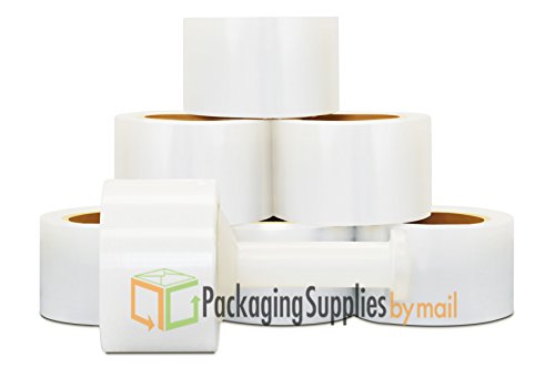 A stack of white packing tape rolls with a single roll placed in front of the stack. The rolls are stacked in a pyramid shape with the largest roll at the base and the smallest at the top. The front roll has a sticker with the text 'PACKING SUPPLIES BY MAIL' and a green and orange box icon. | Narrow Banding Cast Clear Stretch Wrap by PSBM, 3 in. x 1000 ft. x 60 Ga 18 Rolls by PackagingSuppliesByMail | ce479bc218f2cfec067e90ec375cd9df4da87ef5a1f56b2525d91b75733f2f6e | 001229742539 | 0 | 0 | 58 | 20 | 0 | 0 | |