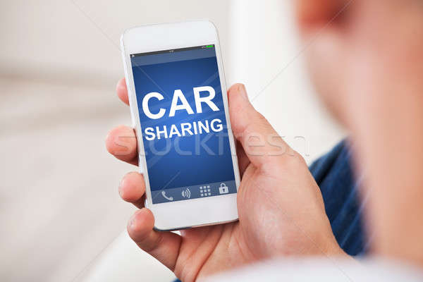 A person's hand is holding a smartphone displaying a blue screen with the text 'CAR SHARING' in white letters. The screen also shows a phone icon and a lock icon. The person's arm and shoulder are visible, and the background is out of focus. | Hand Holding Smart Phone With Car Sharing App On Screen Stock photo \xc2\xa9 AndreyPopov | 2fa479c75eda2b0eb3c049c44eaafbce3a774bdc243e504781faa0dfa351c07a | 001229742565 | 0 | 0 | 44 | 14 | 0 | 0 | |