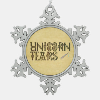 A silver snowflake ornament with a circular background featuring the phrase 'UNICORN TEARS' in a decorative font. The snowflake has intricate patterns and is attached to a silver chain. | Old Parchment Paper Unicorn Tears Celtic Knot Snowflake Pewter Christmas Ornament | 98130d377a1b39777a8a87fe96cf2b6e61ad55c9e89ffcd30fa784f088d347a4 | 001229742793 | 0 | 0 | 29 | 11 | 0 | 0 | |