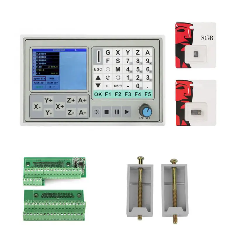A digital display with a blue screen showing various data and a keyboard with buttons labeled 'X', 'Y', 'Z', 'A', 'B', 'C', 'D', 'E', 'F', 'G', 'H', 'I', 'J', 'K', 'L', 'M', 'N', 'O', 'P', 'Q', 'R', 'S', 'T', 'U', 'V', 'W', 'X', 'Y', 'Z', '1', '2', '3', '4', '5', '6', '7', '8', ' | Free Shipping 50KHZ CNC 4 Axis offline controller Breakout Board Carving Engraving Machine Control System Card SMC4-4-16A16B | 31f769f128658a34cacb540597b9d888e430915b11a73cc980bb6fb26dfa08f5 | 001229742942 | 0 | 0 | 54 | 17 | 0 | 0 | |
