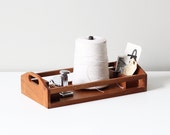 A wooden tray with a single roll of white toilet paper, a small metal canister, and a metal paper clip holder is placed on a white surface. | vintage teak desktop tray / divided desk storage | 0549f86a1265bce3b5a63965cbe74a757147f4ddea61ea392fe45d9c6795f49a | 001229742756 | 0 | 0 | 27 | 8 | 0 | 0 | |