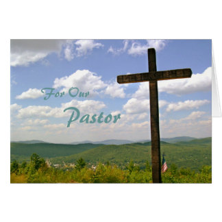 A wooden cross with the words 'For Our Pastor' written on it stands in front of a scenic view of rolling hills and a clear blue sky with a few clouds. | Pastor Appreciation Scripture Card | ece577fb1d01f74e37b6d99c0cea707aa5a278868e4a5a0b95a678b9863e366d | 001229742893 | 0 | 0 | 31 | 4 | 0 | 0 | |
