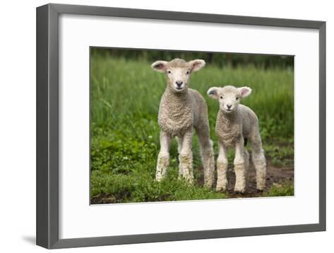 A framed picture of two baby lambs standing in a grassy field. The lambs are facing the viewer, and the picture is set against a plain background. The frame is a simple, dark color, and the image has a realistic appearance. | Portrait of Two Cute Baby Sibling Romney Lambs in a Green Pasture-Karine Aigner-Framed Art Print | 0a3f0b2bc738ae8341cfd1f59b4d580afb5ebf53f18c66b913e1c4498459d2d9 | 001229743151 | 0 | 0 | 41 | 15 | 0 | 0 | |