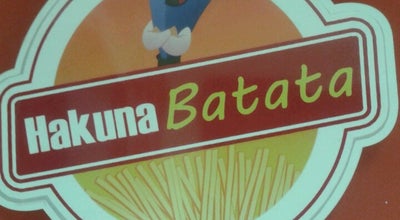 A close-up of a red and white sticker with a stylized illustration of a character's leg and a yellow circle with a red border. The sticker reads 'HAKUNA BATATA' in a playful, cursive font. The background is a gradient from orange to white, and the sticker appears to be on a surface with a red hue. | Photo of Diner Hakuna Batata at Av. 36570-000, Brazil | 1fe0b098528dae9d6af638e192c5f41ac18171593d983a7f83cca918a49df828 | 001229743035 | 0 | 0 | 56 | 9 | 0 | 0 | |