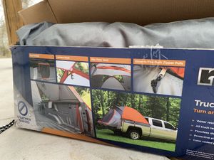 A cardboard box with a tent inside is on the ground. The tent is partially set up, with the rain fly and poles visible. The box has a label with instructions and diagrams for setting up the tent. The tent appears to be a pop-up style with a red and white color scheme. | Rightline Gear Truck Tent for Sale in Bronson, FL | 8f42744bfbef30d11ff0b29c20f5cdb81e3b182be68eb4f19b1fb1909b45fcf8 | 001229743025 | 0 | 0 | 53 | 9 | 0 | 0 | |