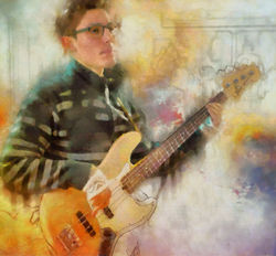 The second image is a stylized, impressionistic painting of a man playing an electric guitar. The man is wearing glasses, a striped sweater, and is positioned in front of a colorful, abstract background that resembles a painting. The guitar is depicted with a warm, golden tone, and the overall image has a dreamy, artistic quality. | Magnus "music in colours" | 44285daa69361d02b81fea652803b714b822b9911baf20fd0283d1f21cd17750 | 001229743107 | 0 | 0 | 55 | 4 | 0 | 0 | |