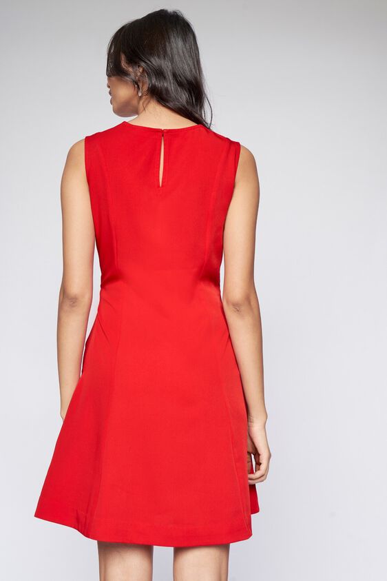 A woman is standing with her back to the camera, wearing a red dress with a V-neckline and a cutout detail at the back. | 4 - Red Solid Flared Dress, image 4 | 9c85d241a3587c3be33631c9dff6c7f1c1b40811a778c9df3eccc57ec0ecb52e | 001229742979 | 0 | 0 | 24 | 8 | 0 | 0 | |