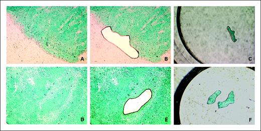 A microscopic image of a green leaf with a white spot on it, surrounded by other green leaf fragments. The image is divided into four sections, each with a different magnification level, labeled A, B, C, and D. The leaf fragments are arranged in a way that suggests a progression from a higher magnification to a lower one. | Fig. 1. LCM of tissues. NNET before (A) and after (B) LCM, and captured normal cells (C). NPC tissue before (D) and after (E) LCM, and captured cancer cells (F). | 5e919452bd0fd920ac1c0cf251be9262d37cc152ec91f03fd4fe7a221d2f8dcd | 001229743423 | 0 | 0 | 58 | 30 | 0 | 0 | |