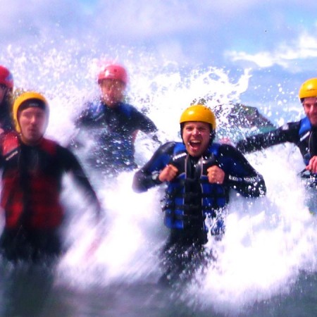 A group of people wearing wetsuits and helmets are surfing on a wave. The wave is splashing around them, and they appear to be enjoying themselves. The water is rough, and the surfers are actively riding the wave. | Coasteering Porthcawl, Mid Glamorgan, Mid Glamorgan | d14b37d4e4ccf37ba42c5038c5b2f215045b02df5342b9c172d3177f31934984 | 001229743344 | 0 | 0 | 38 | 6 | 0 | 0 | |