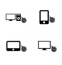A collection of four black and white icons representing different electronic devices. From top left to bottom right, the icons depict a television, a computer monitor, a smartphone, and a tablet. Each icon is simplified with minimal details, focusing on the essential features of the device. | Sale digital devices icon vector | 05b22d98d34f7f6e14914c3405b02a89b2d7b0a72c29222d98d63fa991d79cb8 | 001229743745 | 0 | 0 | 46 | 5 | 0 | 0 | |