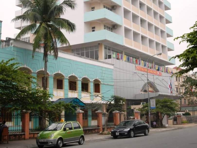 A green car is parked on the street in front of a building with a blue facade and a white building with a blue roof behind it. There are palm trees and a building with a blue and white striped awning. | Bank Star Hotel, \xc4\x90\xe1\xbb\x93 S\xc6\xa1n | 2f2b93015a68bb4d93300a9e458a60137de3a58b0715c847a82148e9000f8fc3 | 001229743750 | 0 | 0 | 41 | 5 | 0 | 0 | |