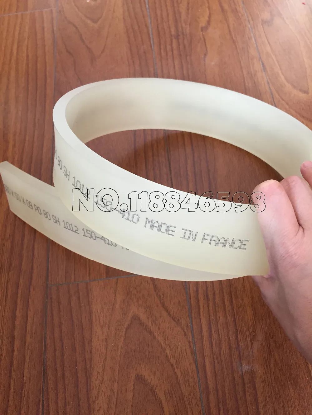 A person's hand is holding a yellow rubber band with a barcode and text on it. The rubber band is placed on a wooden surface. | Free Shipping 50*9MM Flat Screen Printing Squeegee Rubber Blade,80A Durometer White Color for One Meter 300 aaron printing doctor blade for printing machinery w30 40mmxt0 2mmxl100m | d16f3e88dd481c760efb690c93cb7ade9e9724ca6362936e4bf96a3390219495 | 001229743841 | 0 | 0 | 25 | 26 | 0 | 0 | |