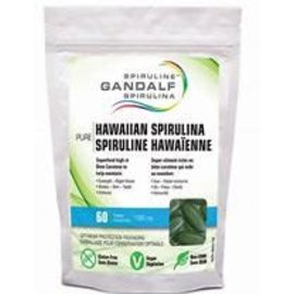 A bag of Hawaiian Spirulina powder is displayed with a green leafy image on the label. The label includes the brand name 'GANDLINA' and the product name 'HAWAIIAN SPIRULINA'. The bag is filled with a greenish powder and has a blue label with white text and green and white graphics. The label also has a green checkmark and a green leaf symbol. | Gandalf Spirulina Hawaiian Spirulina 1000mg 60tabs | 30b235dc4e24ccd879c6799c5db124b7a58dc64cd4f2ca339f0e297c25e64fd4 | 001229744302 | 0 | 0 | 62 | 6 | 0 | 0 | |