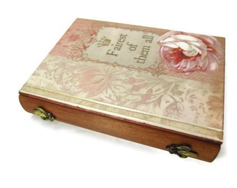 A vintage-style wooden box with a floral pattern and a quote 'Fairst of all them' on the lid. The box has a pink and white color scheme with a large pink flower on the lid. The box is closed and the lid is flat. | Fairest of Them All Book Box Drawer | 8c931e2726ff2fc28304841848cbfc43e498bbb58cf6b690156c5ebe7b4066ea | 001229744294 | 0 | 0 | 44 | 7 | 0 | 0 | |