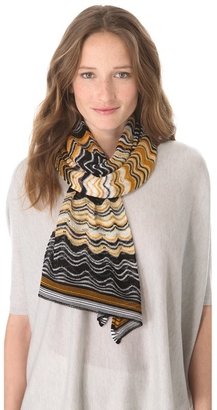A woman with wavy hair is wearing a white top and a multicolored scarf with black, yellow, and white patterns. | Missoni Wave Print Stole | 0a60a451bf00fac11c3cdaeedca58ff28b82745f0a9c5b0731a3c3e9b253927e | 001229744791 | 0 | 0 | 20 | 4 | 0 | 0 | |