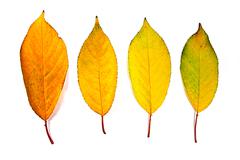 A collection of four yellow leaves with varying shades of yellow, ranging from light to darker tones, are arranged in a vertical line against a white background. Each leaf has a distinct stem attached to it, and they are all oriented in the same direction. | Stock Photo of Assort of different autumn leaves isolated on white background. | c4fabbd2728222c6afc51329cd0031d4b236a9b6ef926a2c817cd07ca4aaae8e | 001229745243 | 0 | 0 | 45 | 12 | 0 | 0 | |