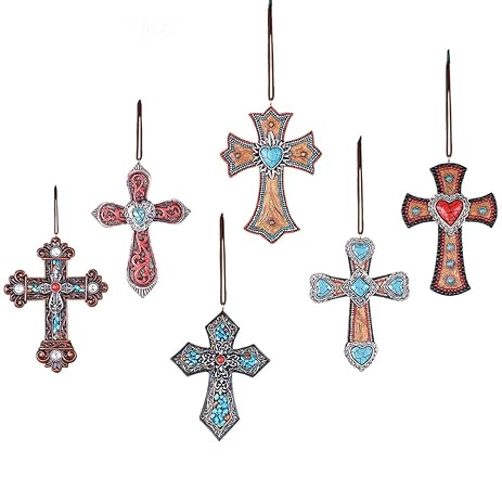 A collection of ornate, colorful crosses with intricate designs and patterns, each with a different color scheme and design elements, hanging from a white background. | Southwestern Christmas Ornaments | 52a7282568c7f9aeca8d026a605c7b02af1e997f163e22ee7c97f33dd57e592d | 001229745330 | 0 | 0 | 25 | 3 | 0 | 0 | |